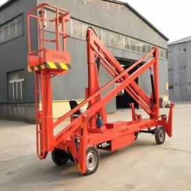 折臂高空作业车易于运输,结构紧凑,快速架设,操作简单。液压支撑腿自动设置水平。动力源有交流、直流和汽油发动机供选择。它移动方便,适用于户外多个变换场所的检修、保洁。