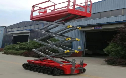 履带式液压升降平台采用加重底盘,工作时,不需要支腿,在升降机升起后,不需要不把升降机收起即可行走,提高了工作效率,同时,它的履带式车轮,增加了与大地接触的面积,在野外泥泞道路上也可行走和工作,是石油勘探、野站部队通信线路安装施工等野外高空作业的理想设备。